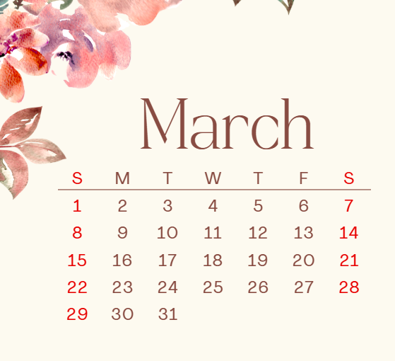 Calendar of Events & Holidays